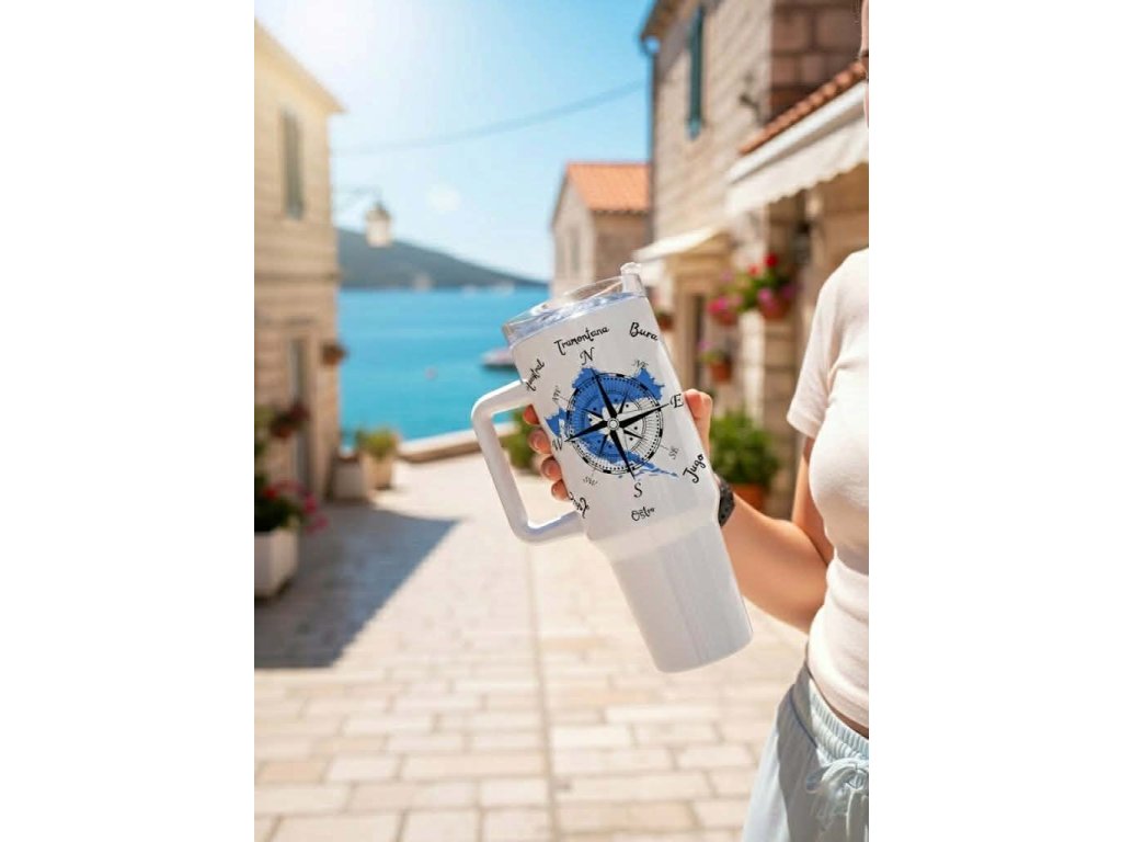 Designový nerezový termohrnem s uchem (1200 ml)